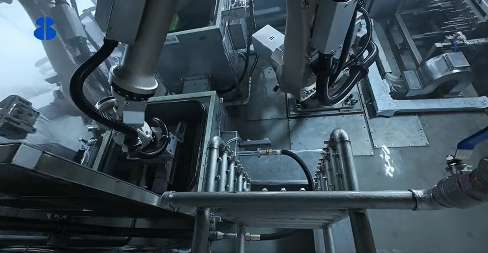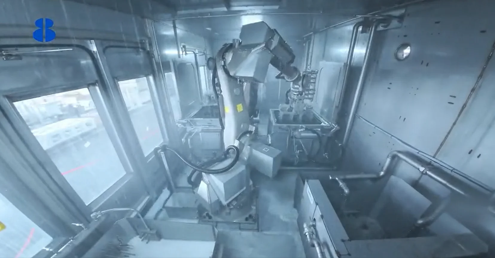 Kolaborasi Robotik Terkordinasi :Dua robot bekerja secara sempurna secara bersamaan dalam proses pemuatan, penempatan, dan pembersihan, sehingga mengurangi waktu menganggur dan memaksimalkan laju produksi. Gerakan yang terkoordinasi memastikan intensitas pembersihan yang seragam di seluruh benda kerja, menjaga kualitas dan konsistensi batch secara stabil.