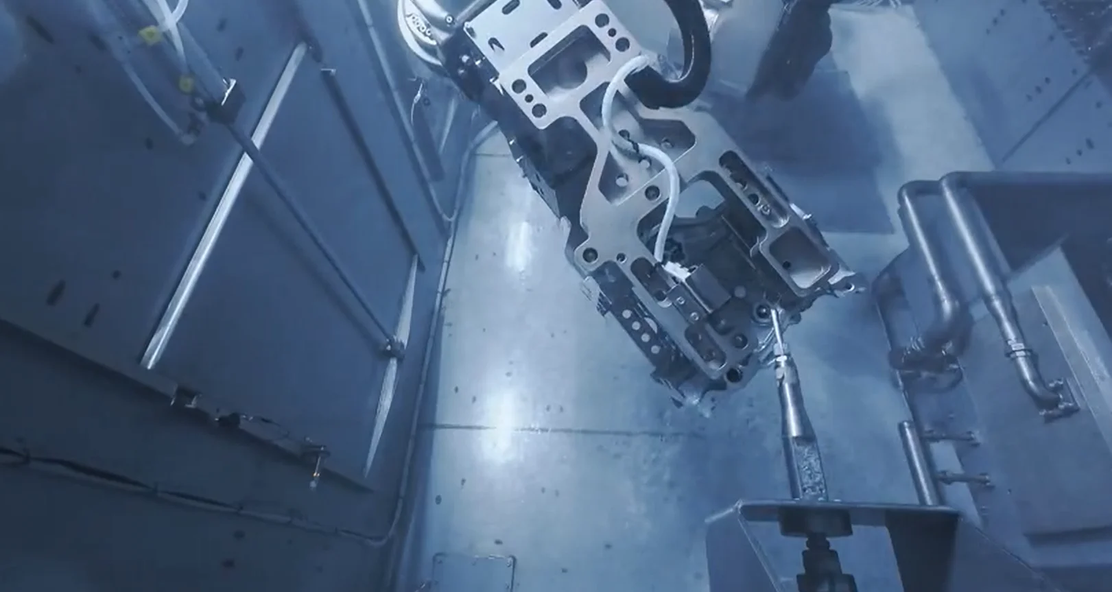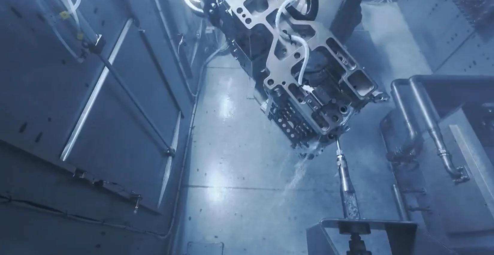 Features air-blast drying and high-efficiency rotary drying. Air-blast drying quickly removes surface moisture, while rotary drying penetrates internal channels and cavities to ensure the cylinder block is completely dry. This prevents rust formation or cross-contamination during transfer to the next production stage.