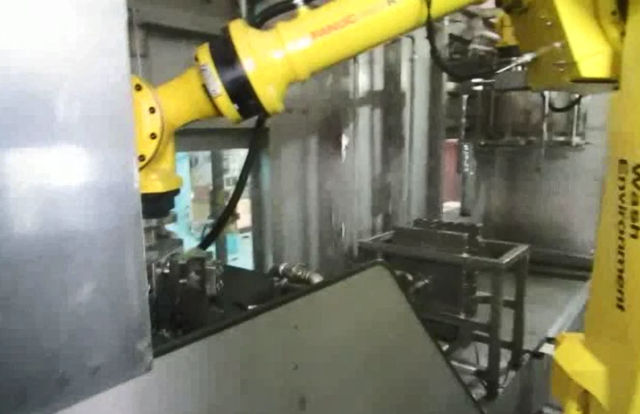 Dual-Robot CVT washing machine, Shimada Big Bird washing machine. SBI customized washing machine, automatic industrial automotive parts cleaning.